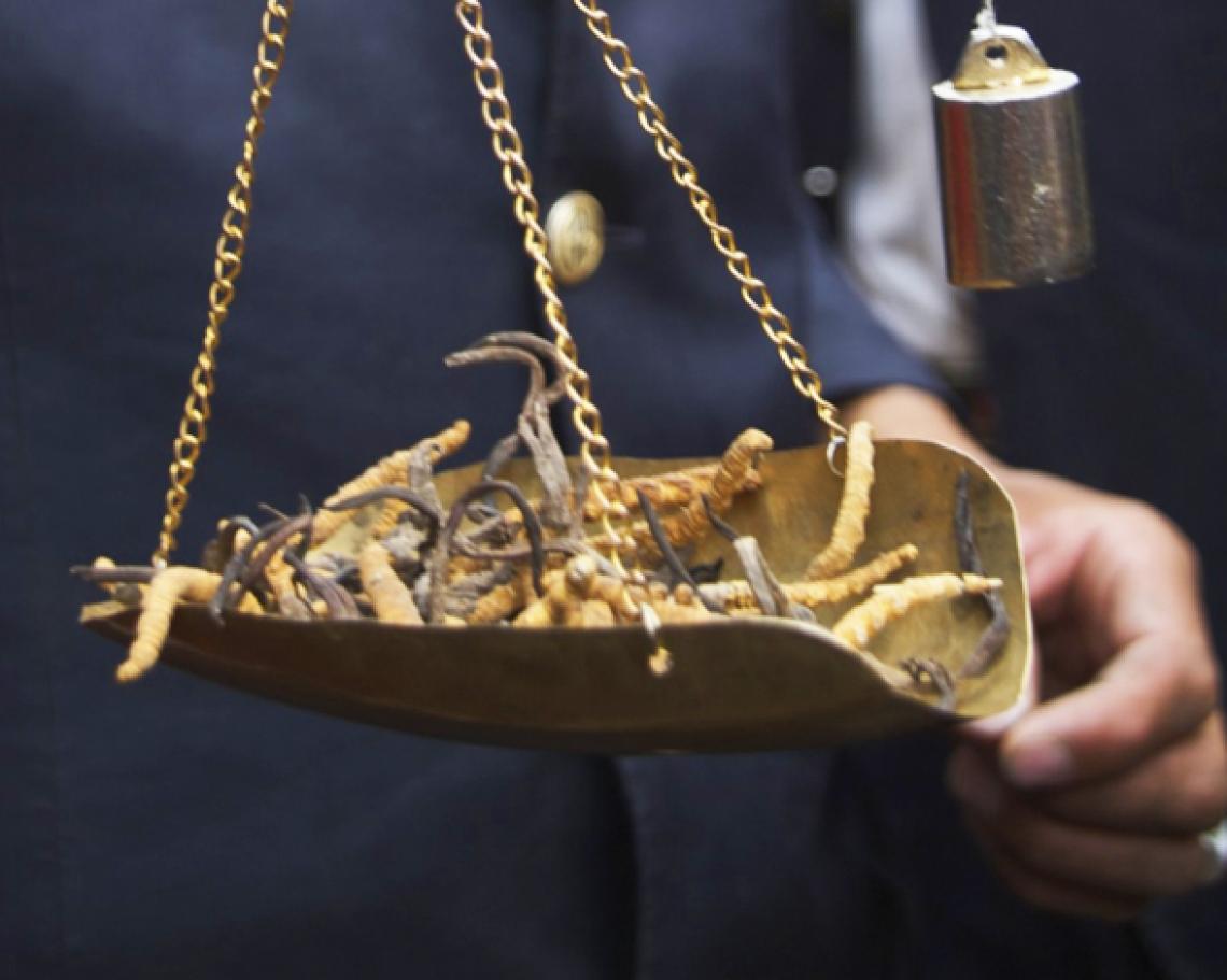 La yarsagumba es un hongo conocido como “viagra del Himalaya” que se desarrolla en las larvas de la polilla murciélago y las ataca hasta momificarlas. Durante el invierno, el hongo se mantiene enterrado y oculto pero el deshielo de los primeros meses de verano permite atisbar un saliente de color terroso que facilita su recolección. Aunque sus efectos medicinales y afrodisíacos no han sido probados científicamente, tiene una gran demanda debido a la popularidad de la medicina tradicional china.